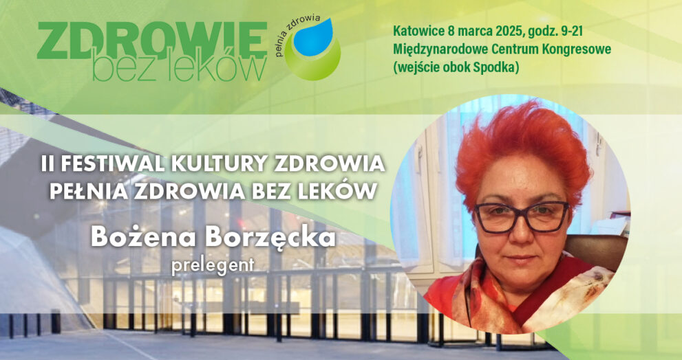 Bożena Borzęcka jest dziennikarką, która od lat zajmuje się tematyką  wzajemnych powiązań pomiędzy sferą emocjonalną człowieka, a odżywianiem. Znalezienie złotego środka, który gwarantowałby spokój emocjonalny i zdrowie fizyczne, to zadanie, które godne jest poszukiwań i zastosowania świadomych rozwiązań.  Jest dyplomowaną bioterapeutką, która w swojej praktyce wykorzystywała chromoterapię (leczenie kolorami). Pracowała kilka lat w Hiszpanii, gdzie […]
